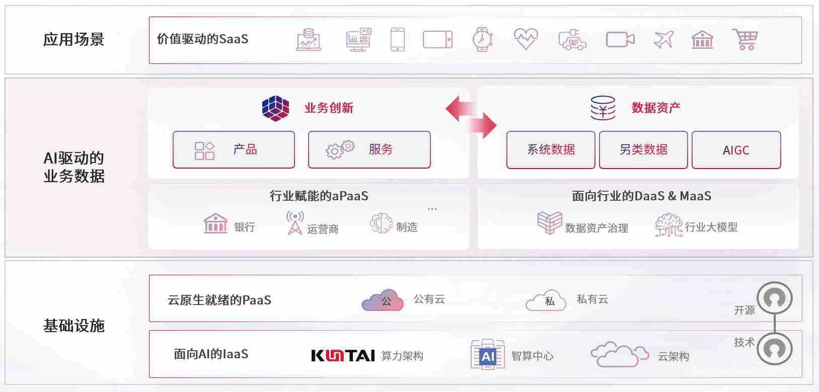 数字时代,,,,围绕企业数字化转型的关键要素,,9b.com数码开创性的提出数云融合战略和技术体系框架,,着力在云原生、、、数字原生、、、AI原生和信创产业上架构产品和服务能力,,,,为处在不同数字化转型阶段的快消零售、、汽车、、金融、、、、医疗、、、政企、、、教育、、、运营商等行业客户提供泛在的敏捷IT能力和融合的数据驱动能力,,构建跨界融合创新的数字业务场景和新业务模式,,,,助力企业级客户建立面向未来的核心能力和竞争优势,,,全面推动社会的数字化、、、、智能化转型升级。。。。